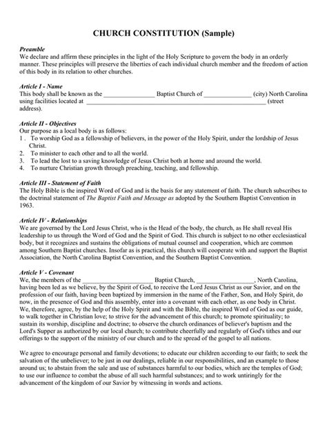 Sample Of A Church Constitution . This sample constitution is intended to serve as a guideline for your church to help in drafting a church constitution. We declare and affirm these principles in the light of the holy scripture to govern the body in an orderly.